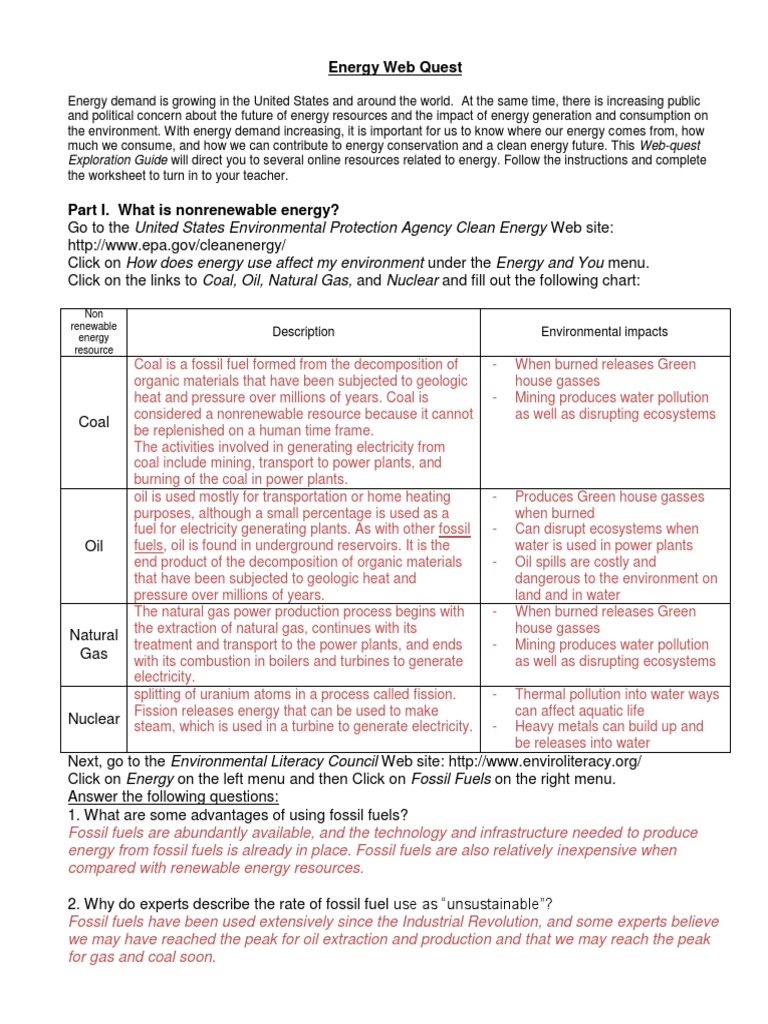 New Energy Web Quest Key Electricity Generation Fuels